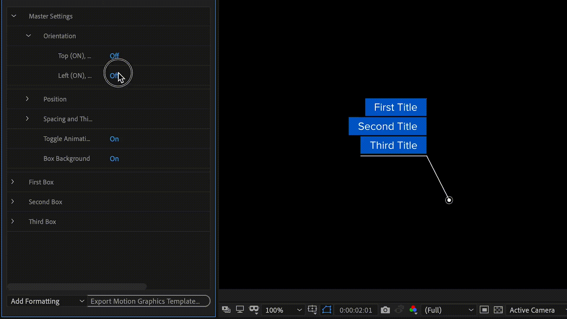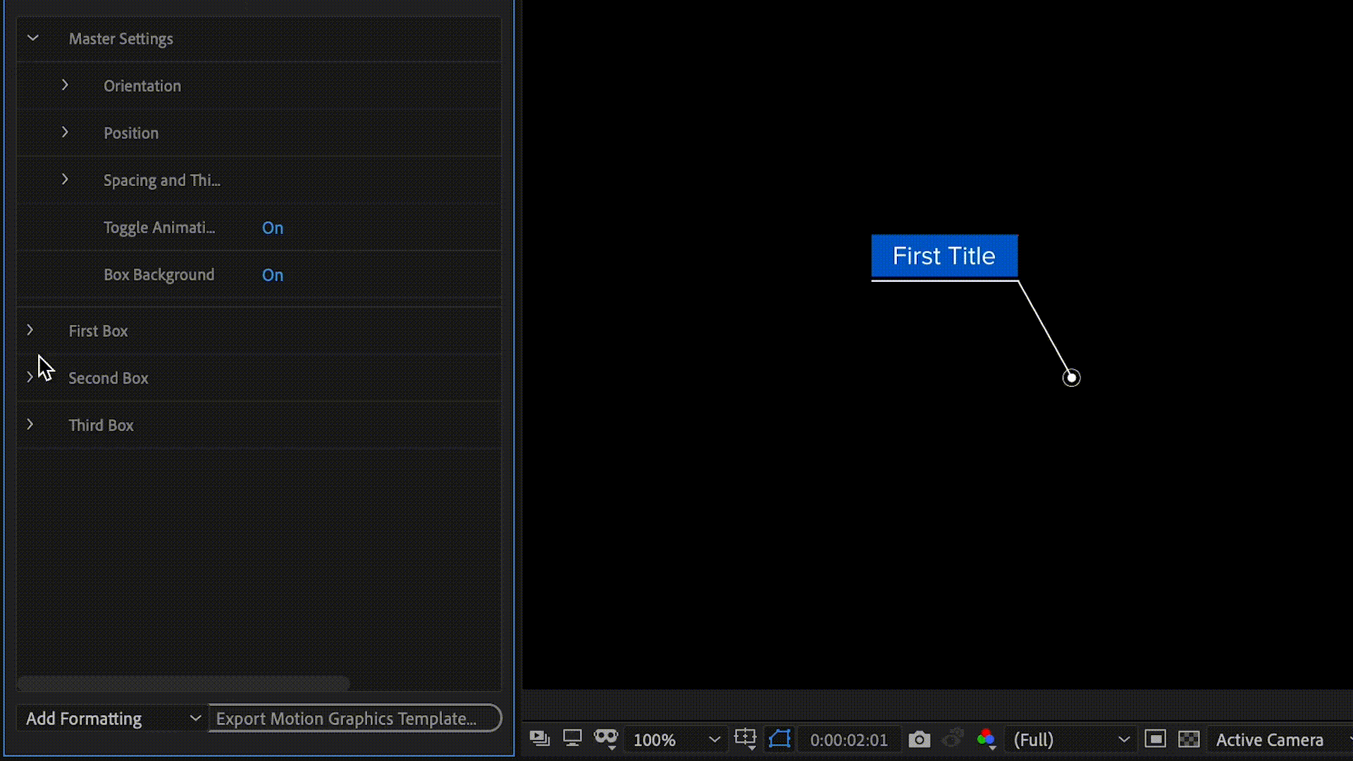 Callouts can easily be motion tracked to videos, mirrored on both axes based on their quadrant, and have additional “text boxes” added and stacked dynamically.